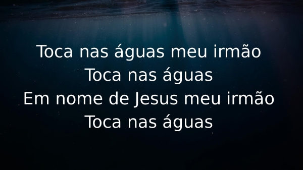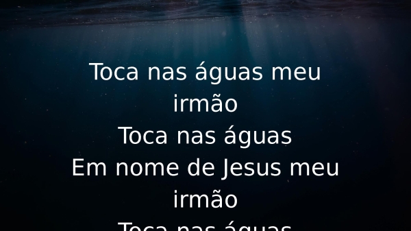 - Toca nas águas meu irmãoToca nas águasEm nome de Jesus meu irmãoToca nas águas