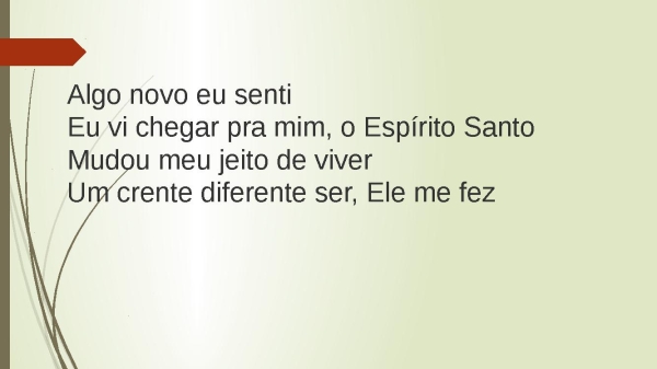 - Algo novo eu sentiEu vi chegar pra mim, o Espírito SantoMudou meu jeito de viverUm crente diferente ser, Ele me fez
