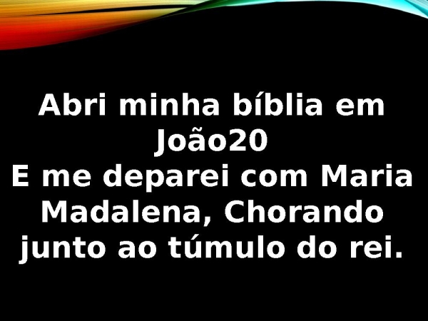 - Abri minha bíblia em João20E me deparei com Maria Madalena, Chorando junto ao túmulo do rei.