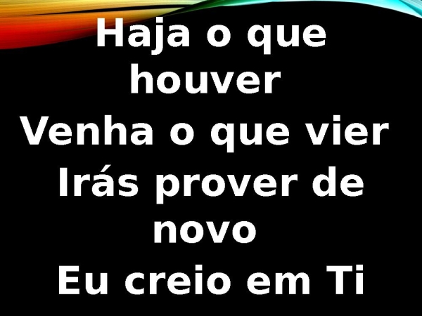 - Haja o que houver Venha o que vier Irás prover de novo Eu creio em Ti
