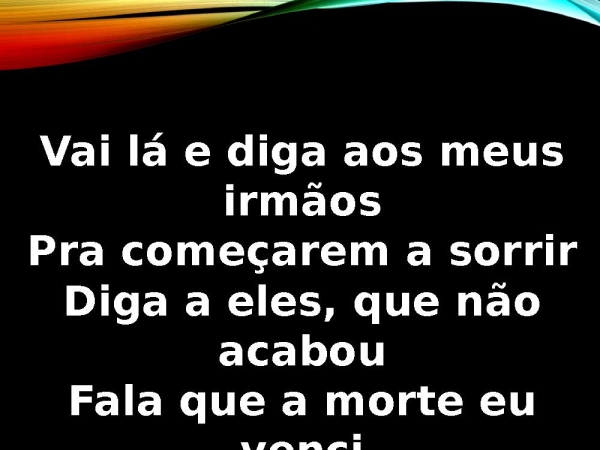 - Vai lá e diga aos meus irmãosPra começarem a sorrirDiga a eles, que não acabouFala que a morte eu venci