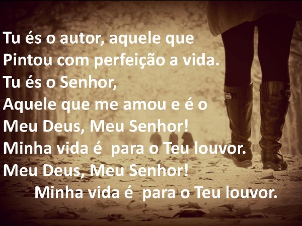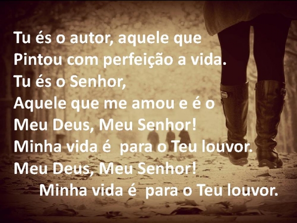 - Tu és o autor, aquele que Pintou com perfeição a vida. Tu és o Senhor, Aquele que me amou e é o Meu Deus, Meu Senhor! Minha vida é para o Teu louvor. Meu Deus, Meu Senhor! Minha vida é para o Teu louvor.