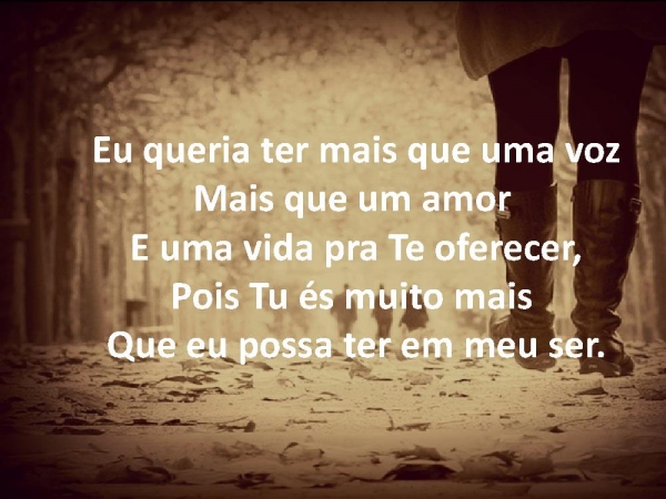 - Eu queria ter mais que uma vozMais que um amor E uma vida pra Te oferecer,Pois Tu és muito mais Que eu possa ter em meu ser.