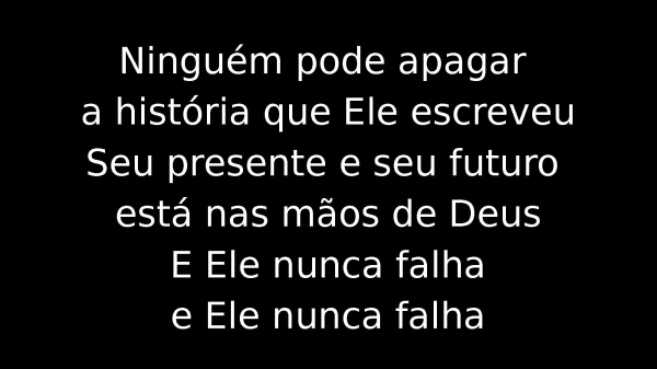 - Ninguém pode apagar a história que Ele escreveuSeu presente e seu futuro está nas mãos de DeusE Ele nunca falhae Ele nunca falha