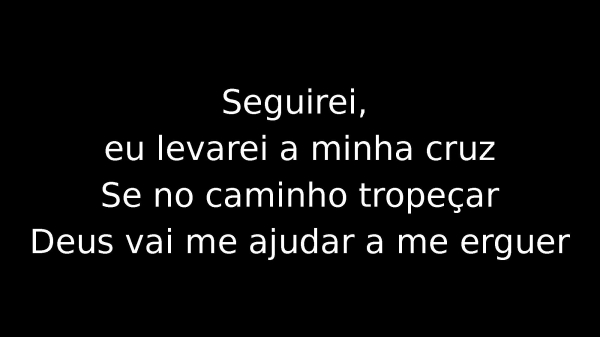 - Seguirei, eu levarei a minha cruzSe no caminho tropeçarDeus vai me ajudar a me erguer