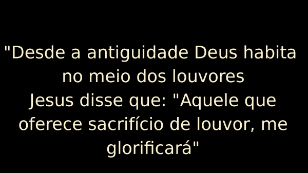 - "Desde a antiguidade Deus habita no meio dos louvoresJesus disse que: "Aquele que oferece sacrifício de louvor, me glorificará"