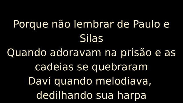 - Porque não lembrar de Paulo e SilasQuando adoravam na prisão e as cadeias se quebraramDavi quando melodiava, dedilhando sua harpa