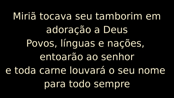 - Miriã tocava seu tamborim em adoração a DeusPovos, línguas e nações, entoarão ao senhore toda carne louvará o seu nome para todo sempre