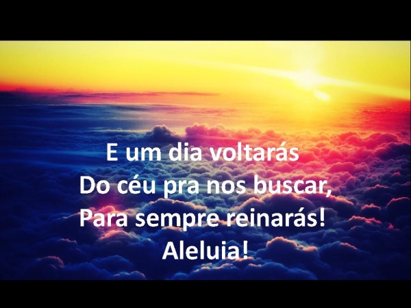 - E um dia voltarás Do céu pra nos buscar, Para sempre reinarás! Aleluia!
