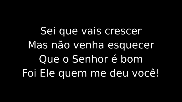 - Sei que vais crescerMas não venha esquecerQue o Senhor é bomFoi Ele quem me deu você!
