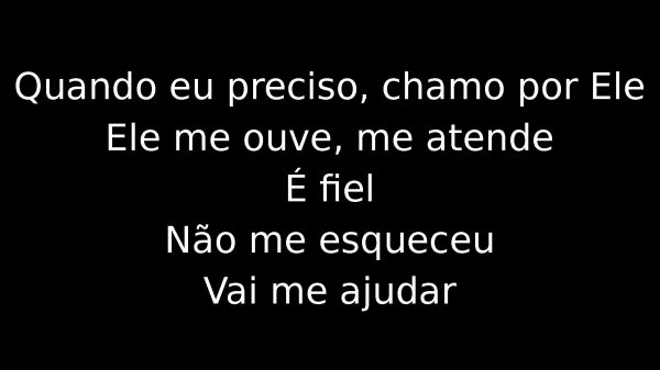 - Quando eu preciso, chamo por EleEle me ouve, me atendeÉ fielNão me esqueceuVai me ajudar