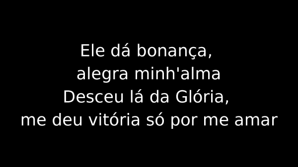 - Ele dá bonança, alegra minh'almaDesceu lá da Glória, me deu vitória só por me amar