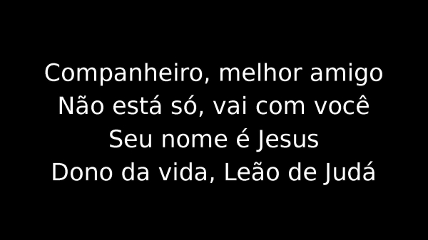 - Companheiro, melhor amigoNão está só, vai com vocêSeu nome é JesusDono da vida, Leão de Judá