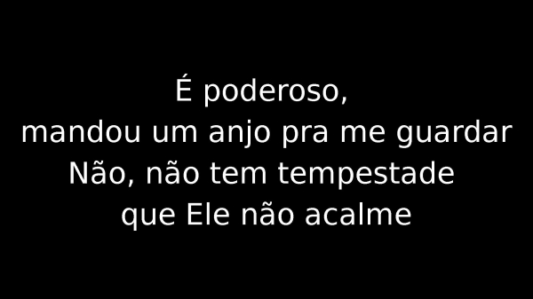 - É poderoso, mandou um anjo pra me guardarNão, não tem tempestade que Ele não acalme