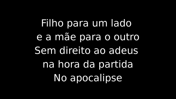 - Filho para um lado e a mãe para o outroSem direito ao adeus na hora da partidaNo apocalipse