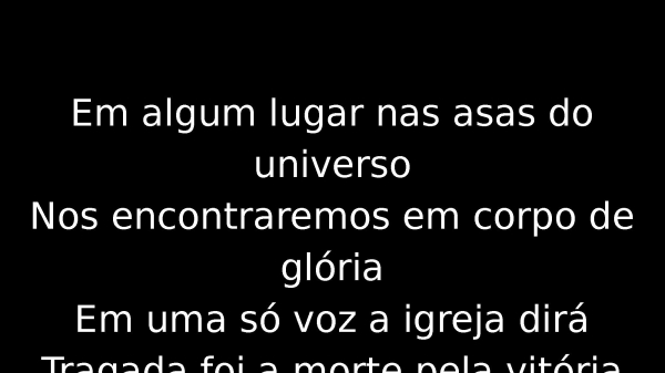 - Em algum lugar nas asas do universoNos encontraremos em corpo de glóriaEm uma só voz a igreja diráTragada foi a morte pela vitória