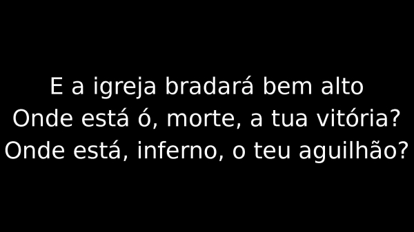 - E a igreja bradará bem altoOnde está ó, morte, a tua vitória?Onde está, inferno, o teu aguilhão?