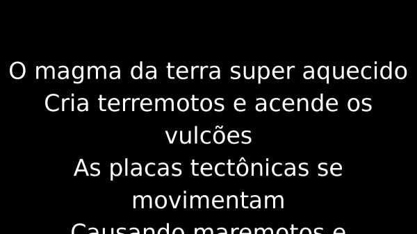 - O magma da terra super aquecidoCria terremotos e acende os vulcõesAs placas tectônicas se movimentamCausando maremotos e destruições