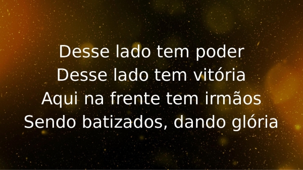 - Desse lado tem poderDesse lado tem vitóriaAqui na frente tem irmãosSendo batizados, dando glória