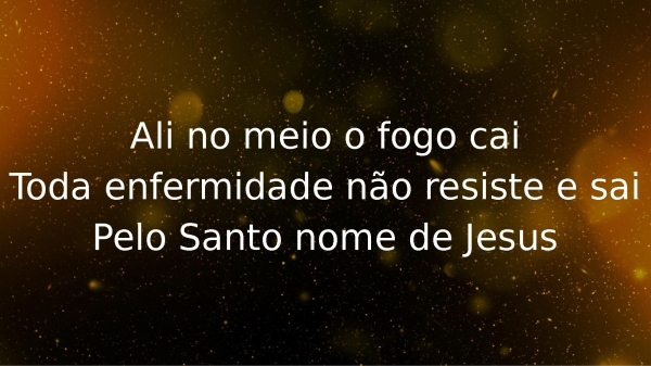 - Ali no meio o fogo caiToda enfermidade não resiste e saiPelo Santo nome de Jesus