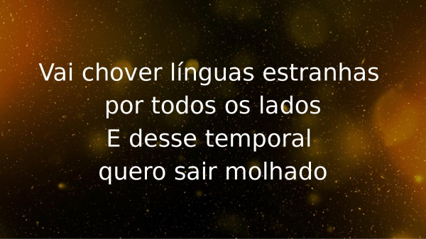 - Vai chover línguas estranhas por todos os ladosE desse temporal quero sair molhado