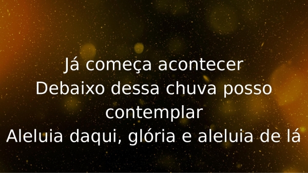 - Já começa acontecerDebaixo dessa chuva posso contemplarAleluia daqui, glória e aleluia de lá