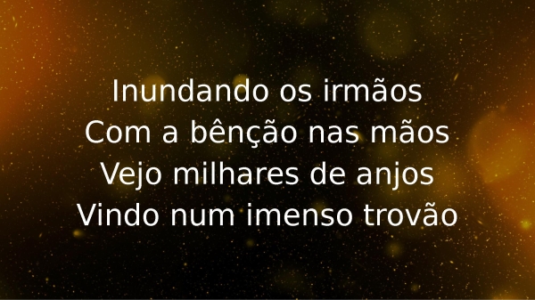 - Inundando os irmãosCom a bênção nas mãosVejo milhares de anjosVindo num imenso trovão