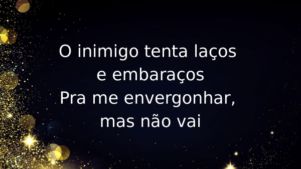 - O inimigo tenta laços e embaraçosPra me envergonhar, mas não vai