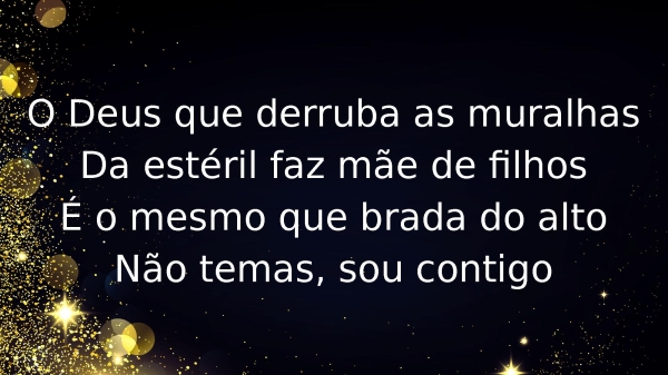 - O Deus que derruba as muralhasDa estéril faz mãe de filhosÉ o mesmo que brada do altoNão temas, sou contigo