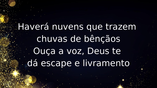 - Haverá nuvens que trazem chuvas de bênçãosOuça a voz, Deus te dá escape e livramento