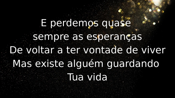 - E perdemos quase sempre as esperançasDe voltar a ter vontade de viverMas existe alguém guardando Tua vida