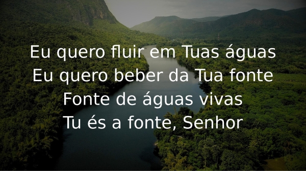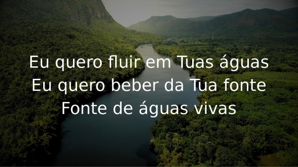 - Eu quero fluir em Tuas águasEu quero beber da Tua fonteFonte de águas vivasTu és a fonte, Senhor