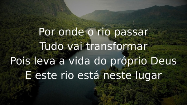 - Por onde o rio passarTudo vai transformarPois leva a vida do próprio DeusE este rio está neste lugar