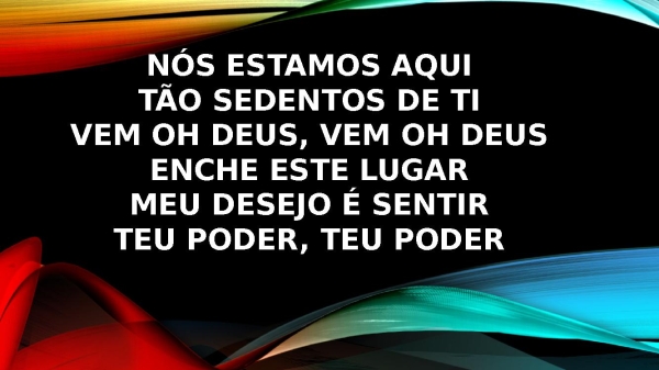 - Nós estamos aquiTão sedentos de TiVem oh Deus, vem oh DeusEnche este lugarMeu desejo é sentirTeu poder, Teu poder