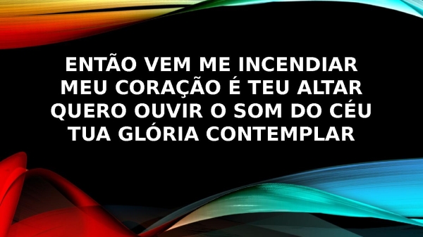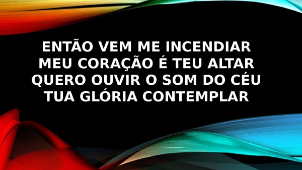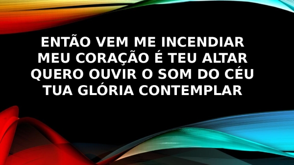 - Então vem me incendiarMeu coração é Teu altarQuero ouvir o som do céuTua Glória contemplar