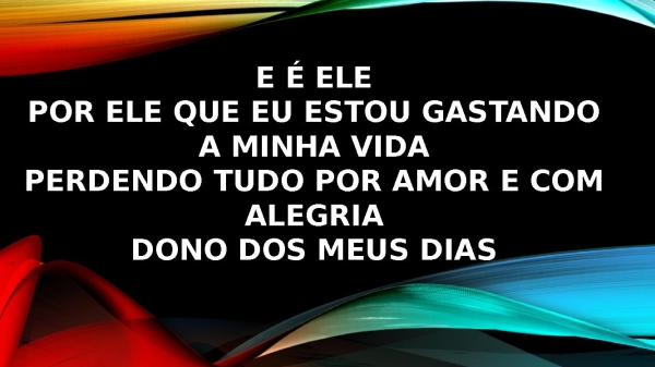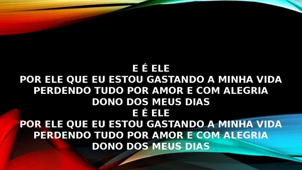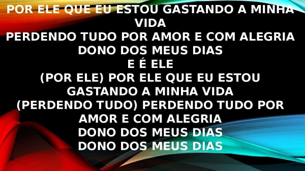 - E é ElePor Ele que eu estou gastando a minha vidaPerdendo tudo por amor e com alegriaDono dos meus diasE é ElePor Ele que eu estou gastando a minha vidaPerdendo tudo por amor e com alegriaDono dos meus dias