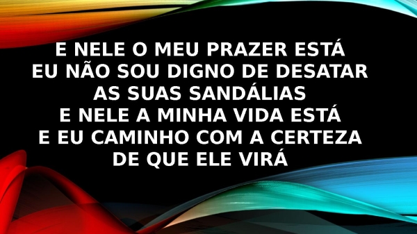 - E Nele o meu prazer estáEu não sou digno de desatarAs Suas sandáliasE Nele a minha vida estáE eu caminho com a certezaDe que Ele virá
