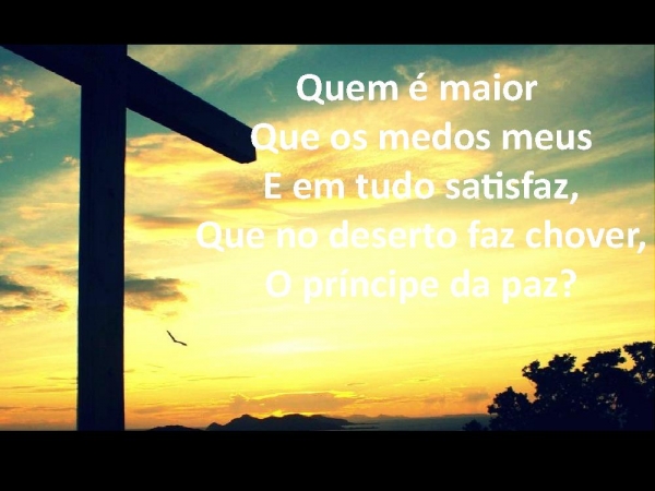 - Quem é maior Que os medos meus E em tudo satisfaz, Que no deserto faz chover, O príncipe da paz?