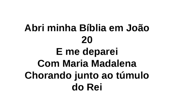 - Abri minha Bíblia em João 20E me depareiCom Maria MadalenaChorando junto ao túmulo do Rei
