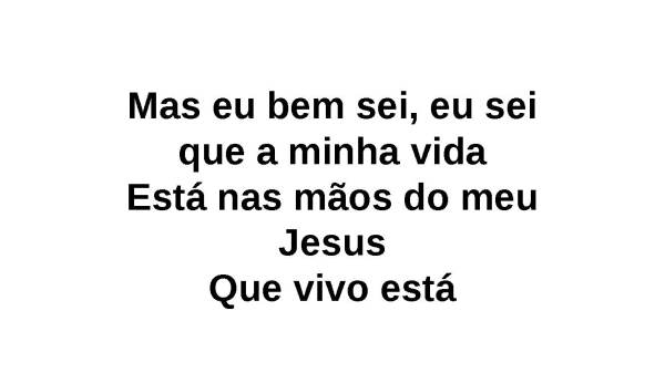 - Mas eu bem sei, eu sei que a minha vidaEstá nas mãos do meu JesusQue vivo está