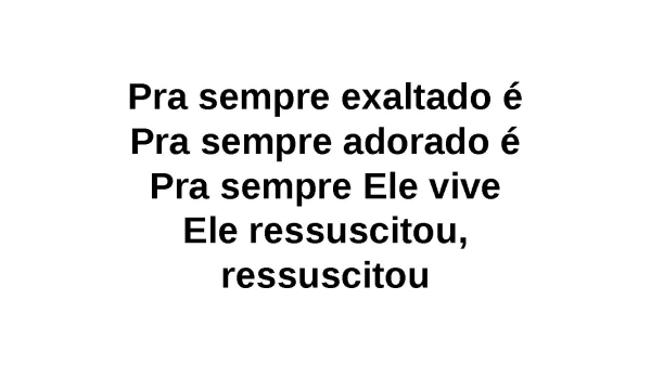 - Pra sempre exaltado éPra sempre adorado éPra sempre Ele viveEle ressuscitou, ressuscitou