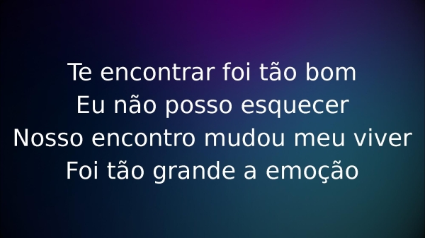 - Te encontrar foi tão bomEu não posso esquecerNosso encontro mudou meu viverFoi tão grande a emoção
