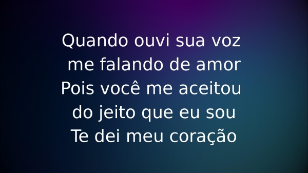 - Quando ouvi sua voz me falando de amorPois você me aceitou do jeito que eu souTe dei meu coração