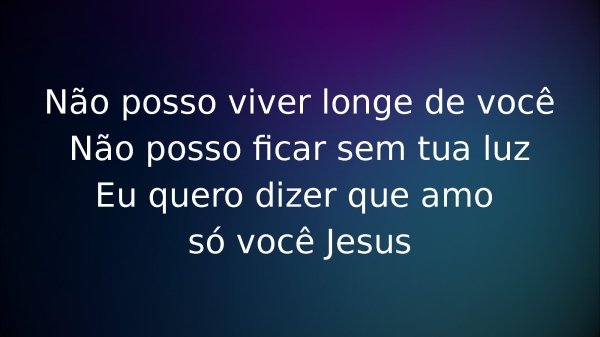 - Não posso viver longe de vocêNão posso ficar sem tua luzEu quero dizer que amo só você Jesus