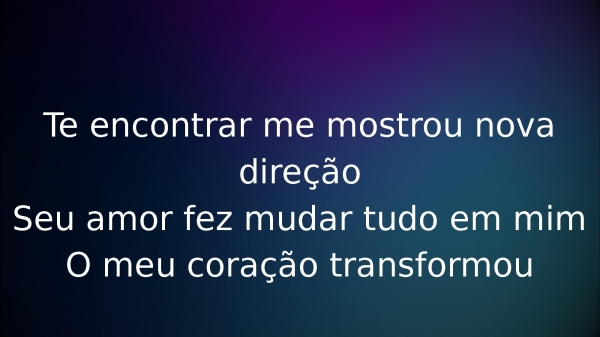 - Te encontrar me mostrou nova direçãoSeu amor fez mudar tudo em mimO meu coração transformou