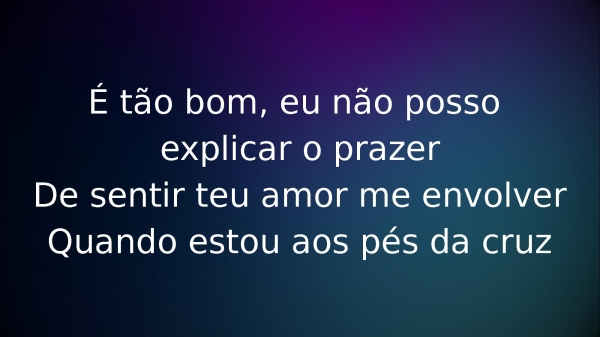 - É tão bom, eu não posso explicar o prazerDe sentir teu amor me envolverQuando estou aos pés da cruz