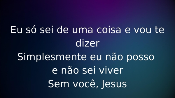 - Eu só sei de uma coisa e vou te dizerSimplesmente eu não posso e não sei viverSem você, Jesus