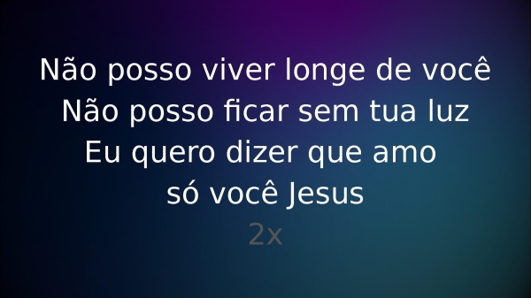- Não posso viver longe de vocêNão posso ficar sem tua luzEu quero dizer que amo só você Jesus2x