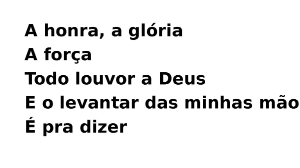 - A honra, a glóriaA forçaTodo louvor a DeusE o levantar das minhas mãosÉ pra dizer