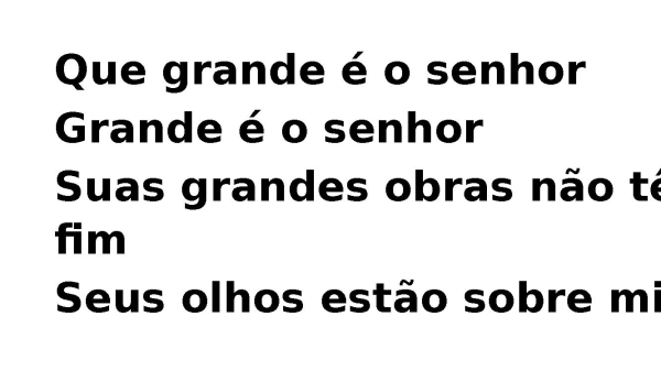 - Que grande é o senhorGrande é o senhorSuas grandes obras não têm fimSeus olhos estão sobre mim